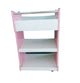 mesa en madera color blanco con rosado.